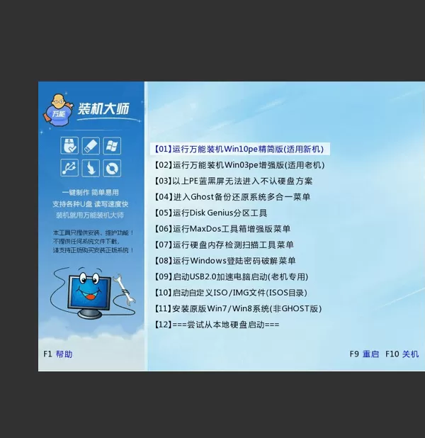 制作完成之后将U盘插入需要装系统的电脑中,按启动热键进入此界面,选择【01】运行win10PE精简版。