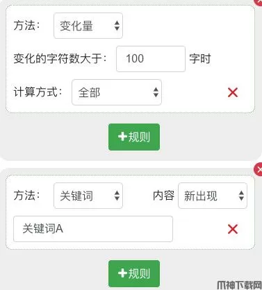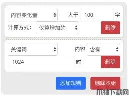 例如,我想要实现,内容出现关键词A或内容变化了大于100字时,可以如下设置: