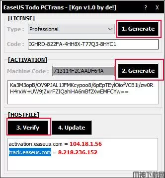 7、点击verify,获得激活需要屏蔽的ip,打开hosts文件,加入屏蔽地址;
