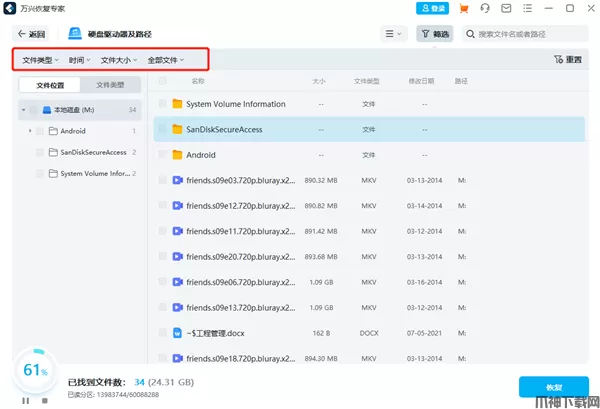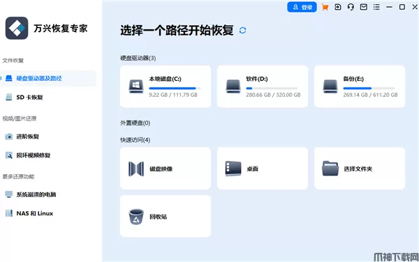万兴恢复专家官方电脑版是一款电脑数据恢复工具,支持硬盘、回收站、U盘、SD卡、相机、录音笔等各类存储设备数据恢复,适用多种文件类型,帮助用户快速扫描恢复找回。
