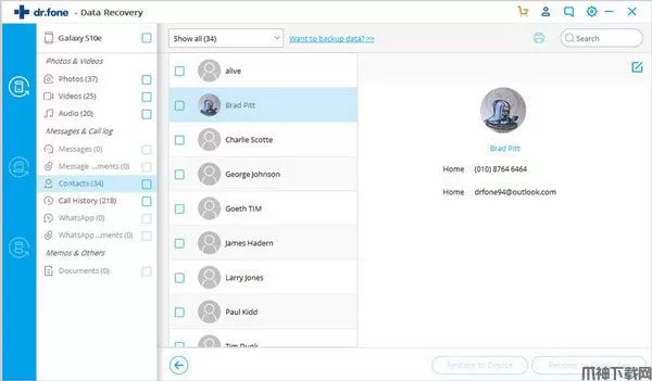 借助领先的数据恢复技术,dr.fone使您能够以最有效和最直观的方式恢复联系人,消息,照片等数据。您丢失的每一条数据都会找回给您。