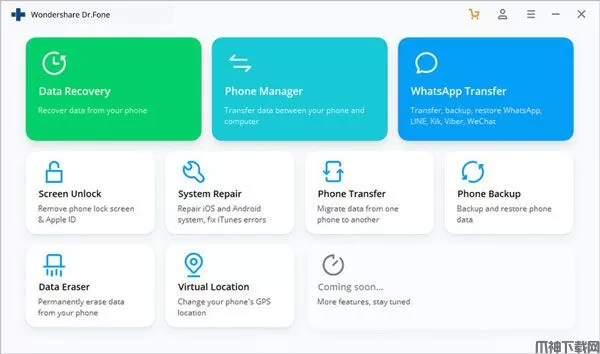 Wondershare Dr.Fone是由 Wondershare研发打造的一款强大的iOS和Android数据恢复工具箱软件,Dr.Fone你能够为您提供一套完美的解决方法来供你将你的iPhone或是Android手机恢复数据使用。Wondershare Dr.Fone的手机数据恢复,传输,屏幕解锁,系统修复等解决方案,各种移动应用程序可在您的Android和iOS上传输和恢复数据,除了PC端软件外,dr.fone还为iPhone,iPad和Android设备提供应用程序,以帮助传输或恢复数据,并记录屏幕活动。Wondershare Dr.Fone Android 是业内检索率最高的成功率,恢复照片,视频,联系人,消息,通话记录等,恢复功能兼容6000多台Android设备,恢复功能支持从损坏的三星手机中提取数据,Wondershare Dr.Fone iOS 业内最高的iPhone数据恢复率,从iPhone,iTunes和iCloud恢复数据,恢复照片,视频,联系人,消息,备注,通话记录等。