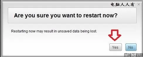 6、点击Yes就能立刻重启电脑。如果点击No,就不会立即重启,自己保存好电脑的设置之后,再启动电脑,确认卸载。
