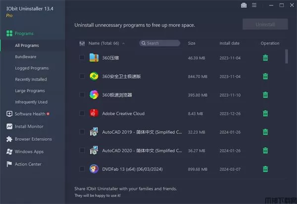 IObit Uninstaller Pro是一款类似的Windows添加/删除程序,其体积小巧,功能强大,运行速度快,可靠性高。