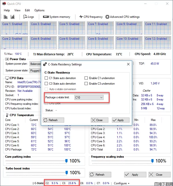 Quick CPU是一款非常强大的实时CPU性能优化和电源管理工具。这款工具以前叫做Core Parking Manager,不知道有没有朋友用过,如果使用过这款工具的朋友都知道他的强大之处,它能够微调和监视CPU性能,并且能够对电源和电压进行设置优化。它拥有Core Parking、频率缩放、Turbo Boost、C状态、变速和FIVR Control以及其他优化功能。