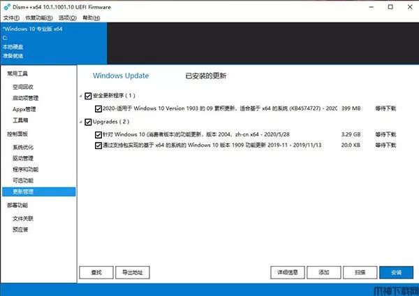 1、可以让DISM++更新管理的扫描功能即可正常使用。