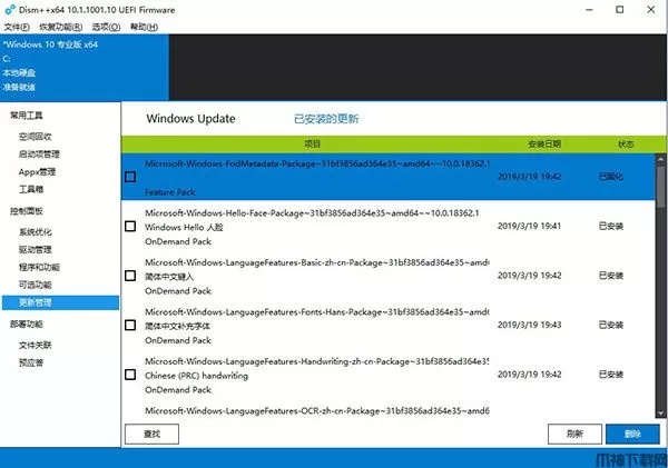 2、Dism++是Dism的交集,提供完全的图形化操作,几乎支持Dism的所有功能以及大量Dism原本所不支持的功能。管理更新、驱动、功能、Appx、可选功能、服务、Compact/WIMboot、系统修复等……放马过来吧。