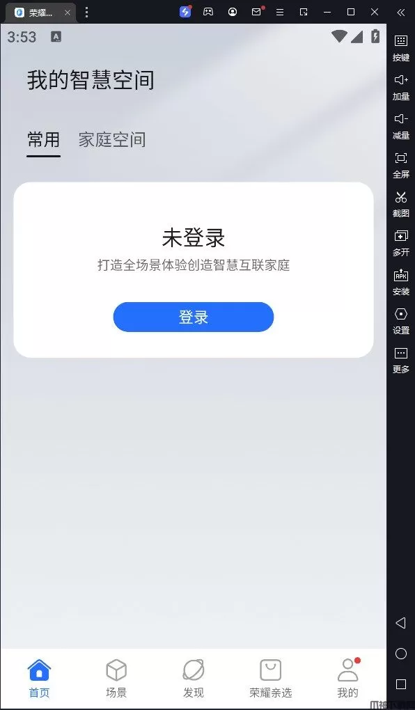 荣耀智慧空间电脑版是需要借助模拟器在电脑上运行的荣耀智能设备管理平台。