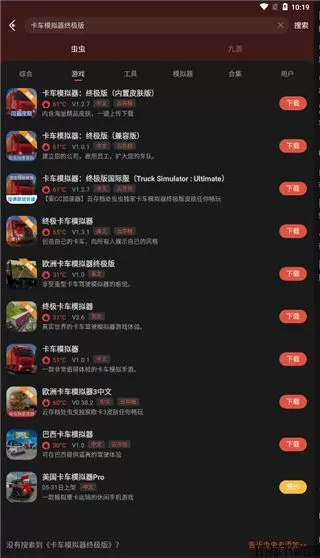 2、进入虫虫助手之后,我们可以进行搜索你需要的游戏,这里小编就以卡车模拟器终极版为例子;