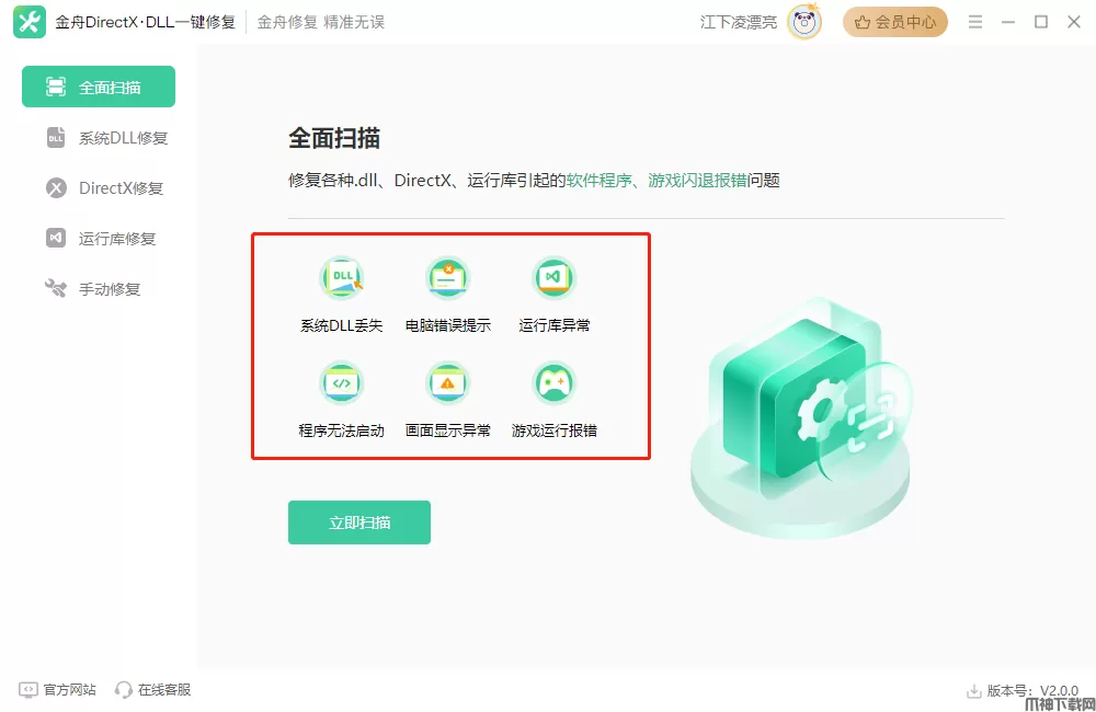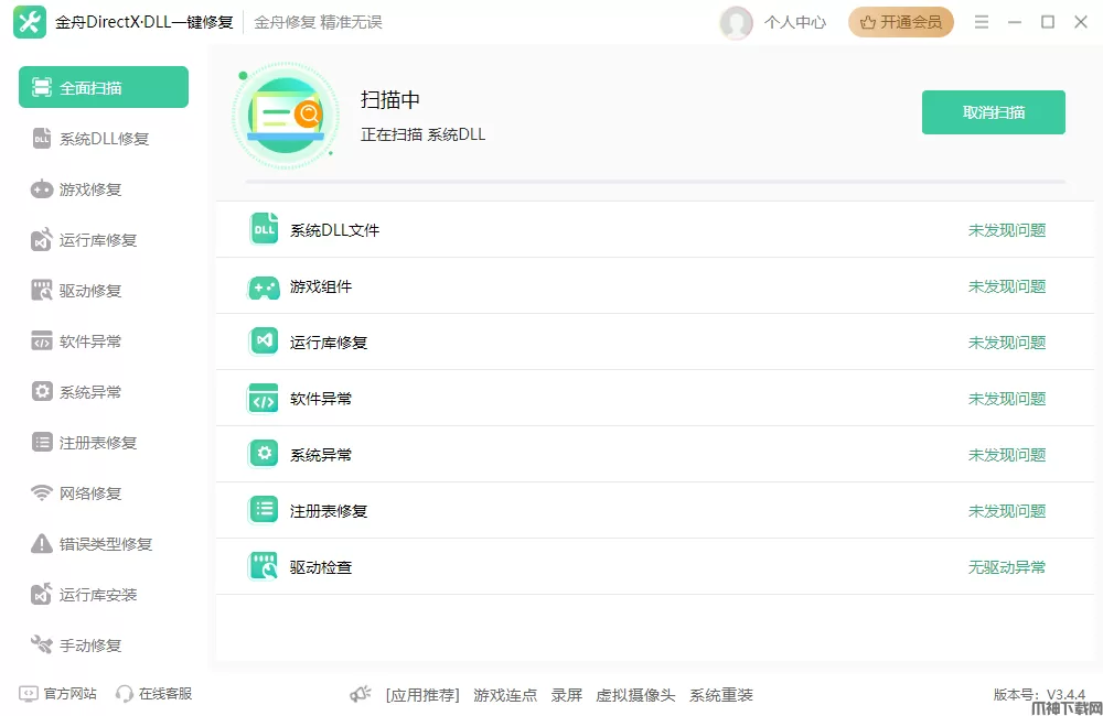 如果您的游戏由于DLL错误而无法启动或持续崩溃,使用金舟DirectX·DLL一键修复,可修复PC游戏上缺少.dll文件的错误,让您再次享受游戏。