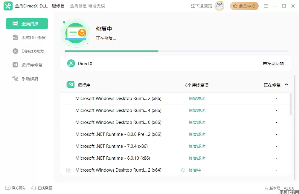 3、恢复丢失的运行库和DirectX 文件。