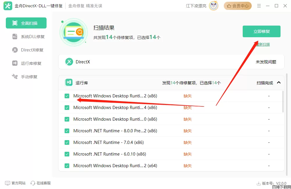 2、一键修复损坏或丢失的DLL文件。