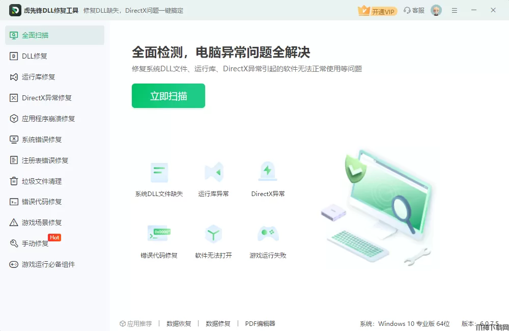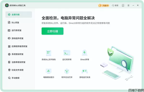 虎先锋DLL修复工具是一款DLL修复/DirectX修复神器,它可一键修复因dll文件缺失、损坏或DirectX组件错误导致的各类问题,例如软件程序无法启动、游戏崩溃、系统卡顿或弹出错误提示等等。