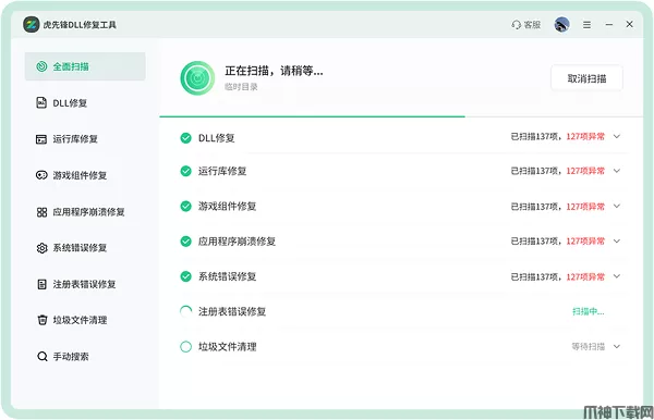 虎先锋DLL修复工具操作简单,用户无需专业知识即可完成扫描与修复,同时它内置了庞大的官方认证DLL资源库,能够满足大多数软件和游戏的系统文件修复需求,从而快速稳定的恢复系统的正常运行。有需要的用户欢迎下载使用。