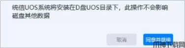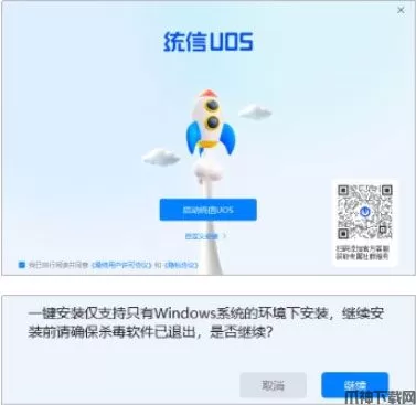 2、单击 【启动统信UOS】。确认电脑是否只安装了Windows,无其他操作系统,确认无误单击【继续】。