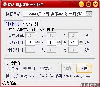 懒人超级定时关机软件是一款方便用户定时关机绿色免费小工具。正如其名字取的,非常适合“懒人”一族,如果你不能长时间呆在电脑前面,但电脑又在上传或下载文件之类的。那么这款懒人超级定时关机软件简直是你的福音。该定时关机绿色版操作简单方便,打开即可使用,支持定时重启,关机,注销功能。需要的平朋友可以下载。