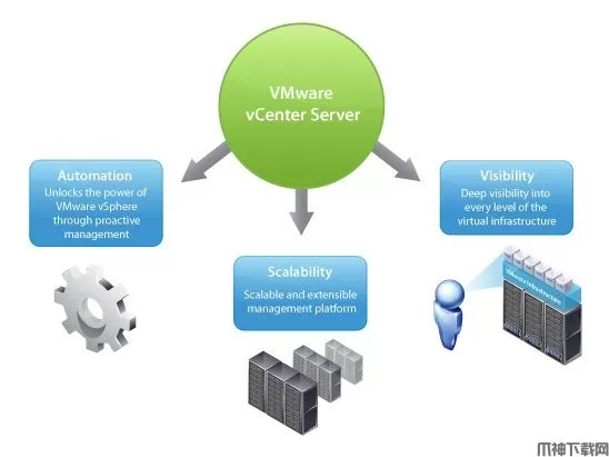 大家都知道VMware公司为我们的用户提供了许多好用的虚拟化服务,这款VMware vCenter Server 9.0就是其推出的一个可伸缩、可扩展的虚拟化管理平台,为用户的虚拟化管理奠定了基础,能够让我们的用户集中管理VMware vSphere环境,与其它管理工具或平台相比,极大的提高了我们的IT管理员对虚拟环境的控制,可以说每一个IT行业的人员都需要跟虚拟环境打交道,这款软件就是帮助用户管理的工具。VMware vCenter Server 8官方版能够提高在虚拟基础架构每个级别上的集中控制和可见性,通过主动管理来发挥vSphere的潜能,无论你拥有十几个虚拟机还是成千上百个虚拟机,VMware vCenter Server 8官方版都是管理VMwarevSphere最简单、有效的方法,借助于这款强大的软件,用户就可以通过耽搁控制台同意管理数据中心的所有主机和虚拟机,而且聚合了集群、主机和虚拟机的性能监控功能,让我们的用户(管理员)能够从一个位置深入了解虚拟基础架构集群、主机、虚拟机、存储等所有信息。