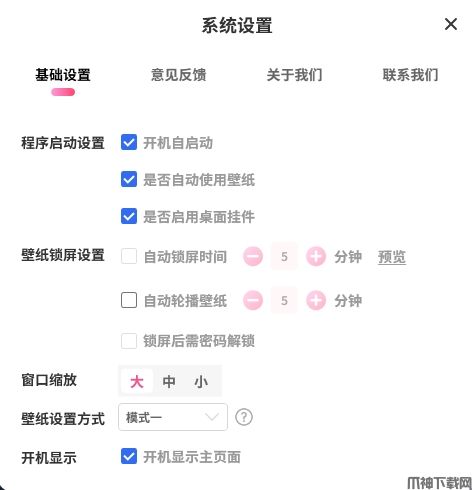 8、元壁纸系统设置界面,开机自启动、是否自动使用壁纸、是否启用桌面挂件。