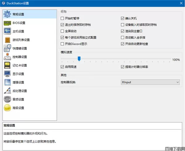 如果勾选“退出时保存即时存档”,则每次进入游戏时会从上次中断的地方开始,非常方便,但有时候即时存档会出现一些问题,如有问题可以取消勾选。使用XBOX手柄可选用XInput后端。