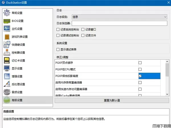 默认会启用快速内存访问重编译,但有时会造成问题,如果系统够快可以关闭此选项。PGXP投影精度可以提高3D画面稳定性,通常可以安全开启。其他选项则只在某些特定游戏上有需要,如非必要不要开启。