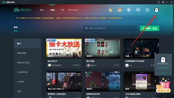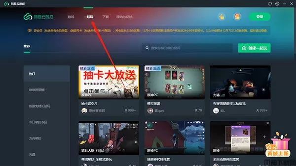 1、在网易云游戏里面大家也是可以一起玩的,需要点击一起玩栏目。