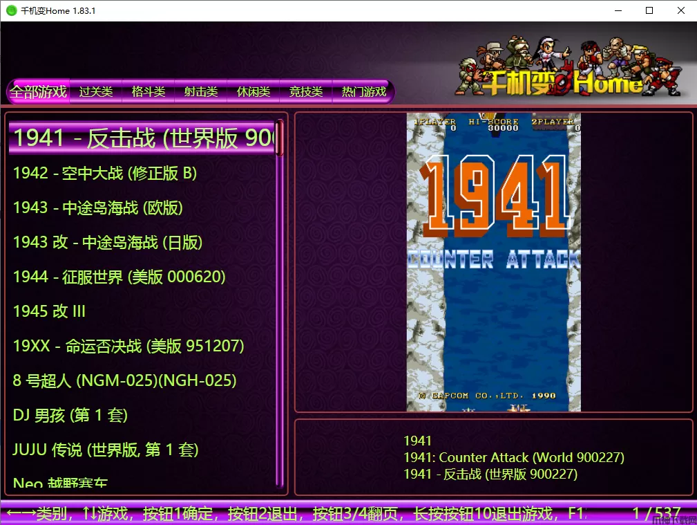 千机变Home电脑版是一款集海量经典街机游戏的模拟器软件,它支持拳皇、合金弹头、三国战纪等数百款怀旧街机游戏,且还允许玩家自定义虚拟摇杆、按键布局等设置。另外,千机变Home街机模拟器内含休闲类、过关类、格斗类、射击类、竞技类五大类游戏,玩家可根据自己的喜爱快速筛选并选择,若是遇到不熟悉的游戏,玩家还可通过游戏预览图快速了解游戏的大体玩法!感兴趣的玩家欢迎下载体验。