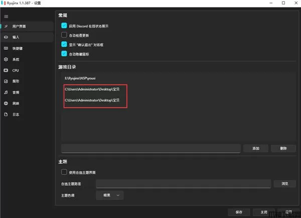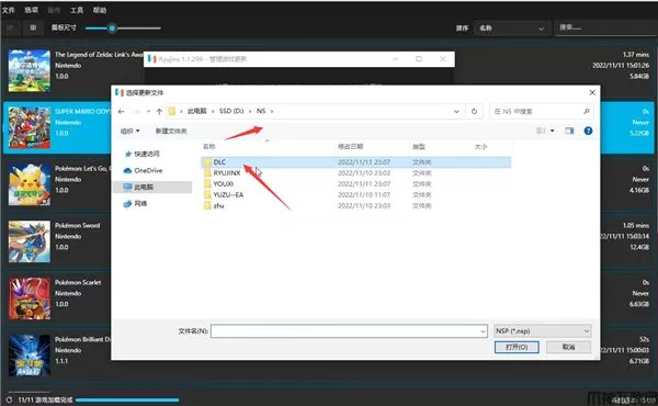 4、进入添加文件目录操作,选择好你下载好的游戏目录并确定,即可添加在Ryujinx龙神模拟器中,并点击下方的保存选项;