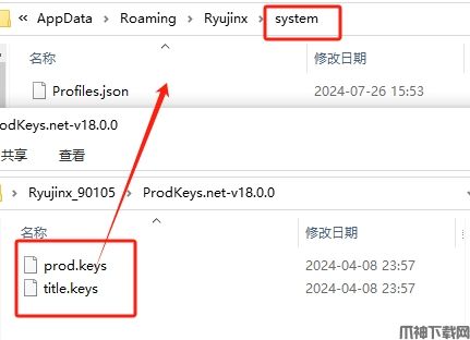4、弹出Ryujinx目录后,进入"system"文件夹,把密钥文件复制进去;