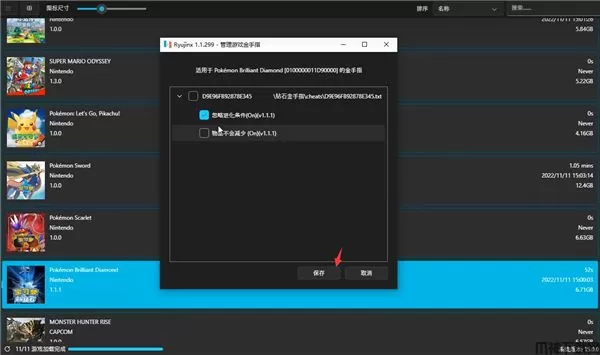 7、然后返回ryujinx模拟器,选择马里奥1.3的版本,点击保存;