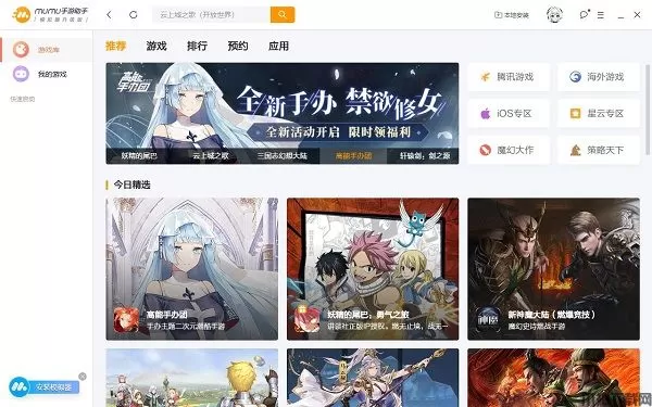 MuMu手游助手是网易公司开发的一款手游助手软件,他是MuMu模拟器的升级版,不同于传统的MuMu模拟器,MuMu手游助手官方版内部搭载了2款引擎,来实现在电脑上运行安卓应用。这2款引擎分别是:模拟器传统“标准引擎”(需电脑开启VT,资源占用高,能运行市面上绝大部分安卓应用)和网易自研“星云引擎”(极速引擎,无需电脑开启VT,资源占用少,针对每一款游戏单独适配),“星云”引擎无需开启VT也能完美运行。4秒启动、占用直降50%.超越128G、多开无上限,它加速器支持免费直连海外手游。在这里拥有电脑大屏,键鼠适配,手柄操作,应用多开,虚拟定位,游戏工具等特色功能,同时助手搭载多引擎可玩更多游戏。在这里你可以找到好多新出的游戏,可以让你的电脑玩手游,享受超大屏的游戏体验,新升级新体验,喜欢在电脑上玩手游的小伙伴们赶紧到本站下载吧