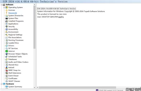 SIW2024是一款国外专门为WIDOWS系统量身定制的软硬件信息检测软件。可读取硬件设备和系统软件相关详细信息,包括主板、BIOS、CPU信息、内存及感应器、PCI插槽、声显卡及存储装置、硬盘驱动器及网络设备等信息。
