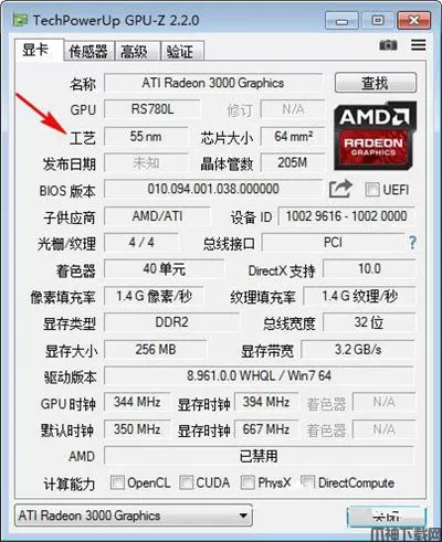 1、打开gpu-z软件以后可以直接看到显卡的各项详细参数;