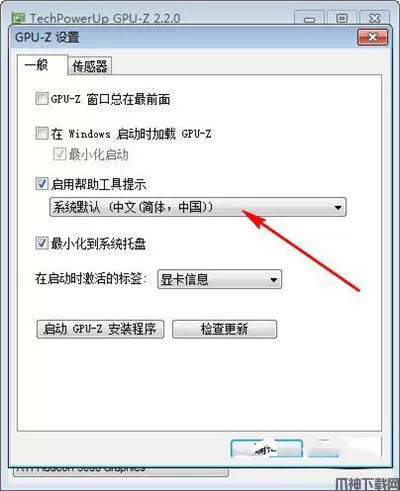 6、很多人不知道gpu-z怎么调中文,在gpu-z设置里面可以将帮助工具提示设置成中文的,也可以设置成其它语言;