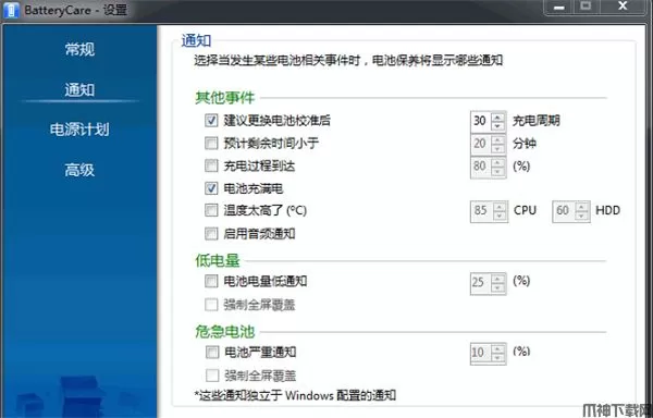 BatteryCare是一个专门针对笔记本电脑电池设计的检测工具,它可以实时监控电池的放电情况,记录电池的整个放电周期,让用户可以根据显示情况保养电池,延迟电池的使用寿命。