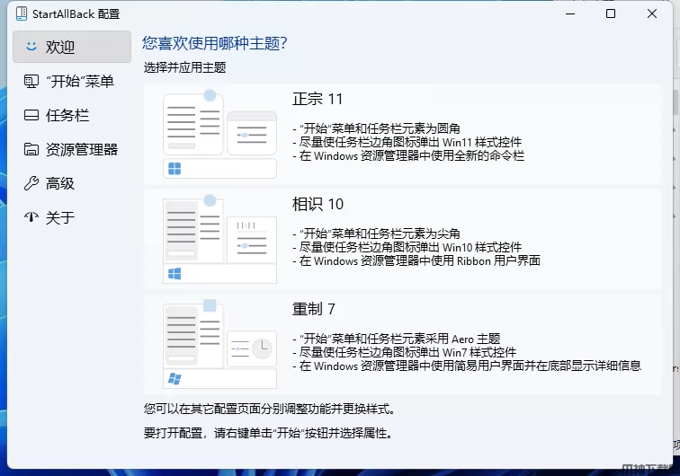 享受 Windows 7、Windows 10 和第三方任务栏和开始菜单样式
