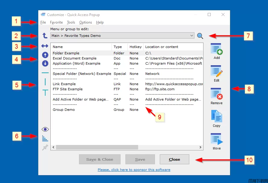 Quick Access Popup是一款快速启动电脑进程的小工具。这款软件能够帮助用户轻松的意见启动想要启动的软件,程序或者是文件。软件在很多工作者日常办公是非常简单轻松的,能够十分有效的节省时间,让用户轻松启动常用的程序文件,提高了工作效率。软件的设置也是十分简单的,界面简单清爽,想要新增既有新增,删除或者编辑,又或者是移除复制再次使用也是有的,功能完善。运行速度快,让你想使用的进程快速启动起来,有需要的用户可以来这里下载软件体验一下吧。让你的工作效率大大提升。本次小编分享的还是该软件的绿色版,用户能够直接下载打开使用。