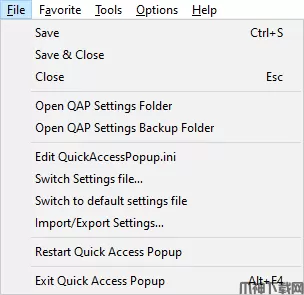 在……里文件菜单,保存您的更改,管理您的QAP设置文件QuickAccessPopup.ini或者离开QAP。