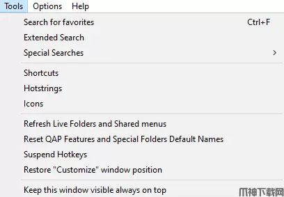 在……里工具菜单,搜索对于收藏夹,在特殊搜索搜索所有收藏夹或断开的收藏夹,管理您的所有快捷指令, 热弦或者核标准情报中心,更新实时文件夹和共享菜单或者暂停QAP热键。