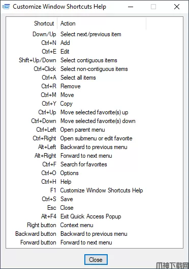 打F1获取中可用的键盘快捷键列表定制窗户。