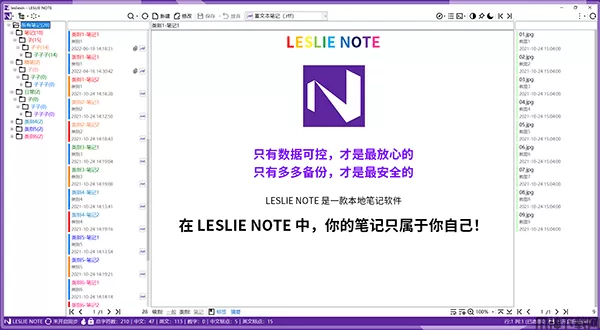 LESLIE NOTE 的基本存储单位是【笔记簿】,【笔记】存放于【笔记簿】中,【笔记】可以添加【附件】。