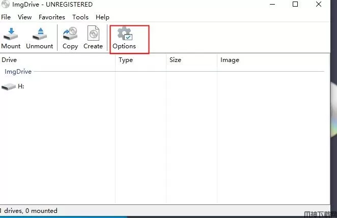 1、打开ImgDrive官方版,进入软件主界面,选择【Options】设置选项;