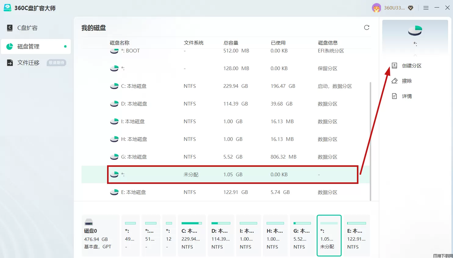 360C盘扩容大师支持创建新分区、删除现有分区、调整分区大小、移动分区位置等,全面管理硬盘分区。