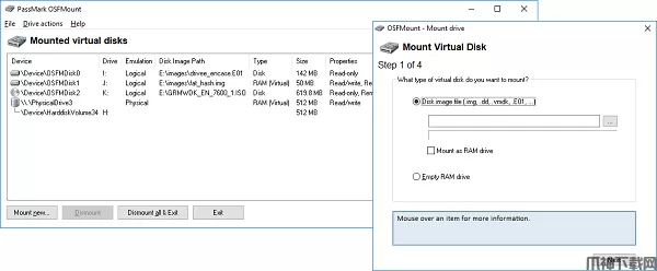 1、OSFMount是一款小巧的虚拟磁盘软件,不仅支持常见的光盘映像格式,还支持硬盘鉴证映像文件和VMware的VMDK文件。同时还支持部分映像格式的回写和扩展大小。默认情况下,映像文件被安装为只读,不改变原映像文件。OSFMount还支持RAMdisk方式安装,能将映像文件加载到内存中以加快访问速度。