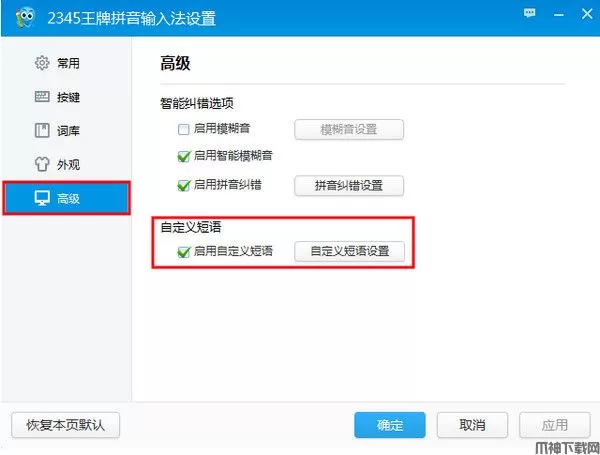 “自定义短语功能”在右键菜单——设置——高级(如图所示)