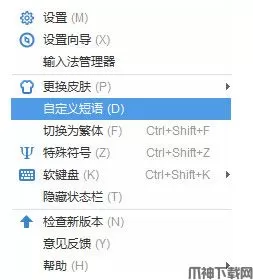 点击“自定义短语设置”或者更简便的方法,你也可以在右键菜单中直接选择自定义短语就可以进行设置。