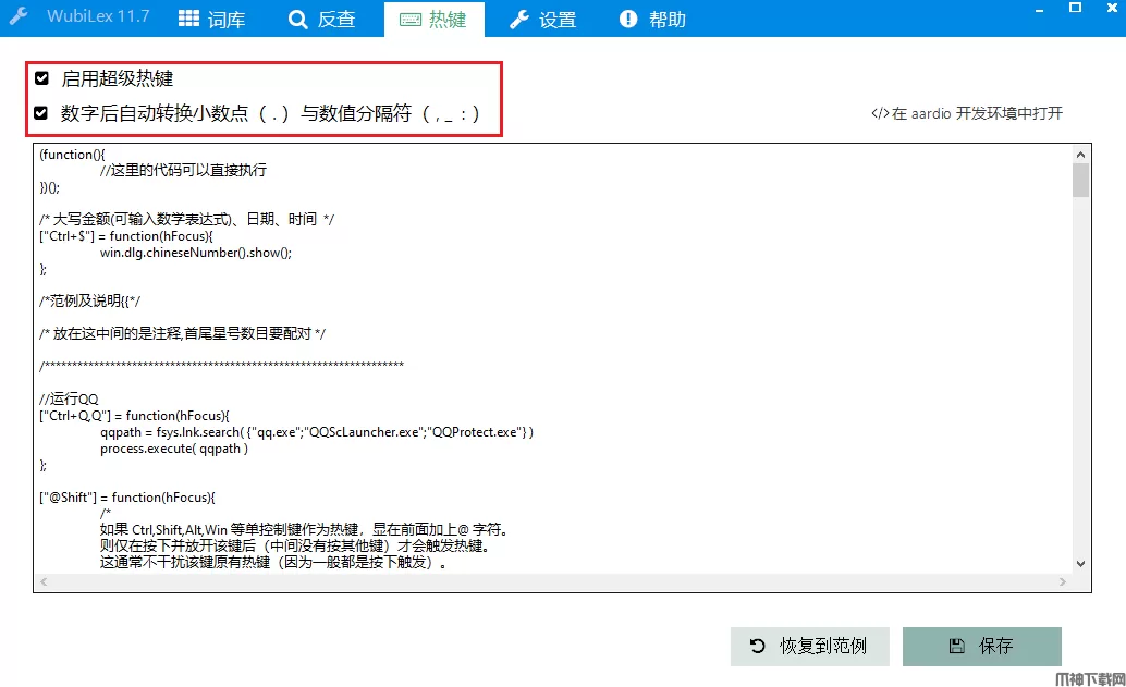 可以用于扩展输入法功能,例如输入数字后自动将句号转换为小数点,输入大写中文数字的中文日期等等。