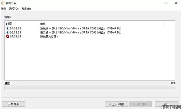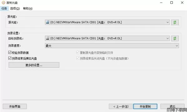2、选择源光驱以及目的光驱。如果源光驱和目的光驱为同一光驱,AnyBurn将创建临时文件用于光盘复制。所有选择完成以后,点击“开始刻录”按钮。