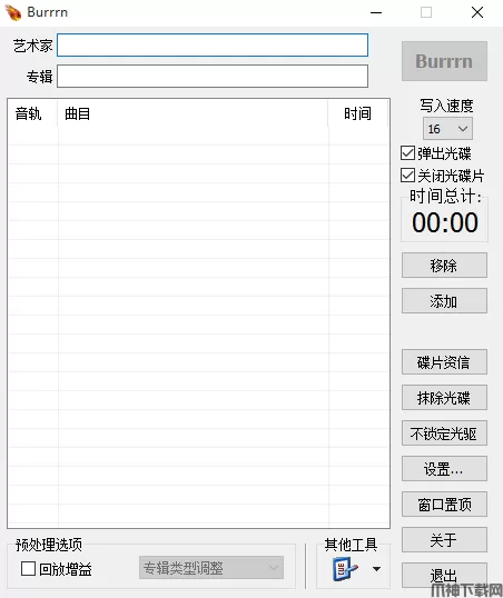 本想刻录APE音乐,但是一般的刻录软件无法直接刻录APE无损音乐,没办法,找了一下找到一个专门用来刻录APE音乐的利器burrrn!Burrrn中文版是一款体积小巧,功能强大的刻录软件。无需安装任何其它刻录软件和音频解码器,就可以直接将APE、FLAC、WAV等多种音频文件刻录成CD,而且支持中文界面,操作简单,而且完全免费。快来下载试试吧!
