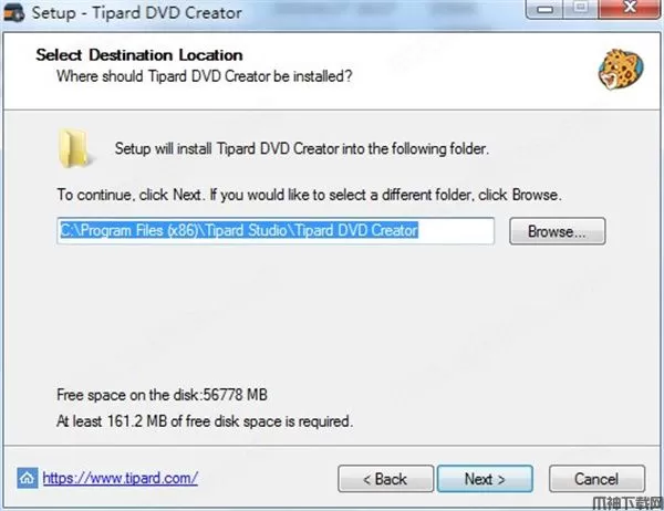 5、选择安装位置,默认为:C:\Program Files (x86)\Tipard Studio\Tipard DVD Creator。