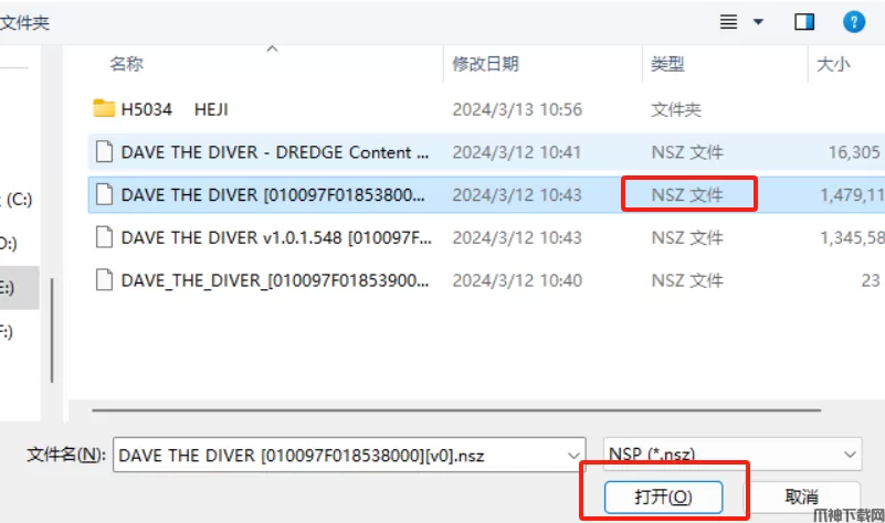 3、点击后显示如下界面,按照下面的提示打开NSZ文件,准备开始转换。